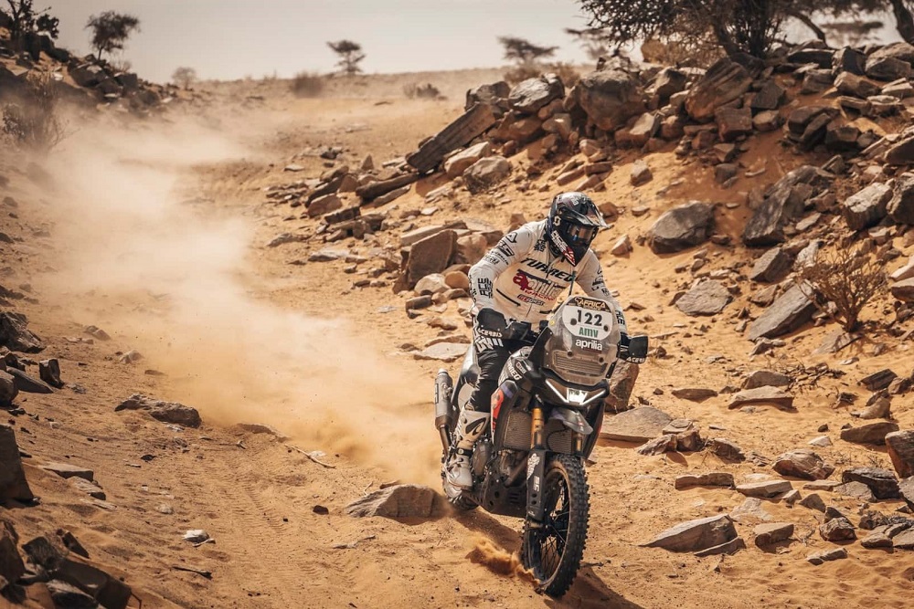 The Aprilia Tuareg, developed from the factory product by Aprilia Racing with the technical collaboration of the Guareschi brothers’ GCorse, tackled the African trails and the desert for the first time. Of course, during 2023, the bike had already proven itself, winning the Italian Motorally title in its début and taking a spectacular podium in the Transanatolia rally in Turkey, where it had its first taste of big raids. But taking on the African desert for the first time on a route that has made off-road history, promised to be much more difficult.