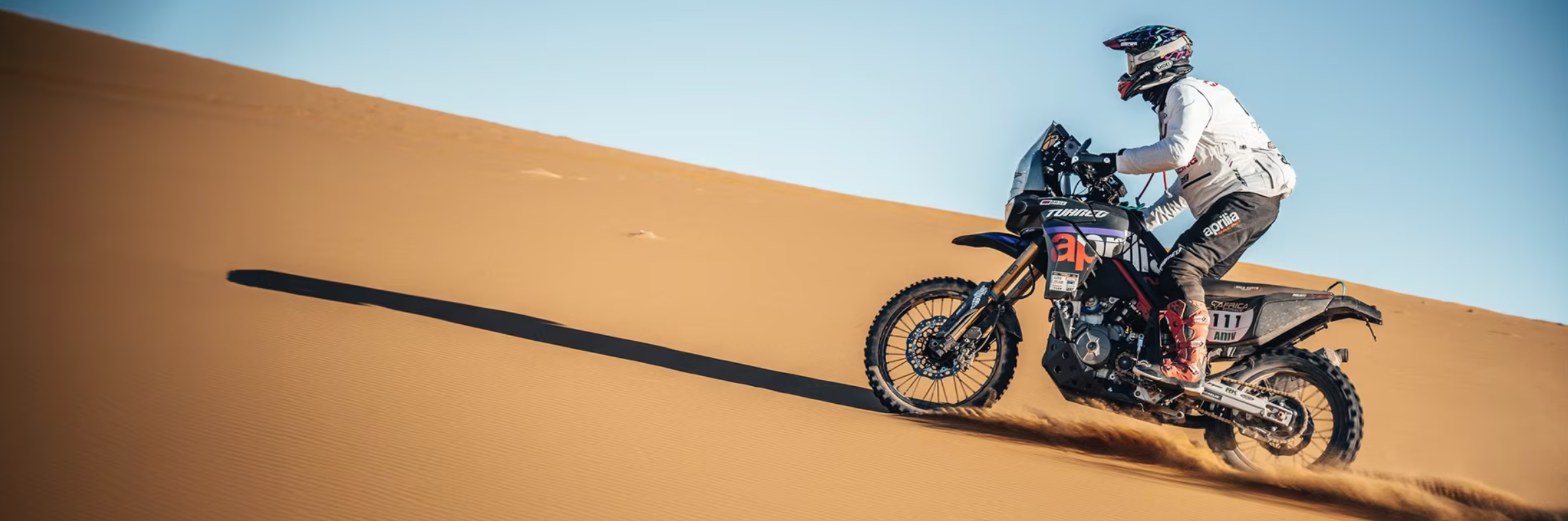 Jacopo Cerutti #111: “It is all wonderful. It was an honor for me to collaborate in the development of the bike with Aprilia Racing and GCorse. In very little time, we reached incredible milestones and I honestly did not think that we would manage to be as ready as we were at the start of this event. However, I knew that the factory Tuareg already provided us with an outstanding starting base and then the rest is down to the great job the entire team did over the past few months. I certainly didn’t expect to win. Maybe starting the race without the pressure of being one of the favorites was a good thing and a bit of good luck also helped, which is never a bad thing because in an African raid, the unexpected is always just around the corner, but instead, everything seemed to go smoothly. A fantastic experience and feeling. Now we can enjoy the celebration.”