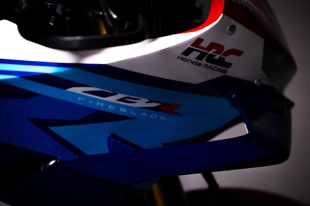 The aesthetically impactful livery sees the CBR logo flaunt a brighter shade of blue, while a striking blue band adorns the belly pan. To reflect this change, the riders’ leathers incorporate a similar blue band running vertically from top to bottom.