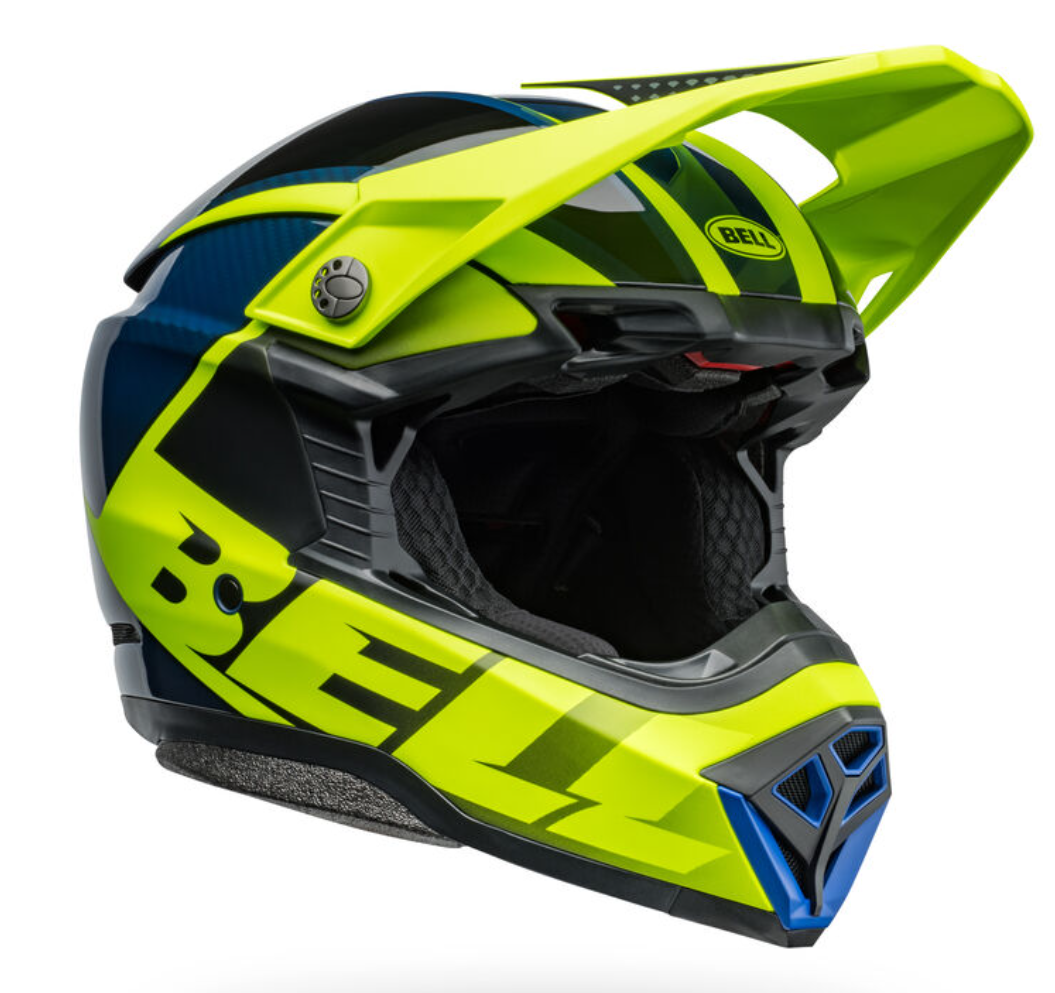 Bell’s Moto-10 Spherical off-road helmet is now available in the “Sliced” graphic in Matte/Gloss Retina/Blue colorway, which was worn by 250SX racer Levi Kitchen at Daytona in the 250SX East Championship.