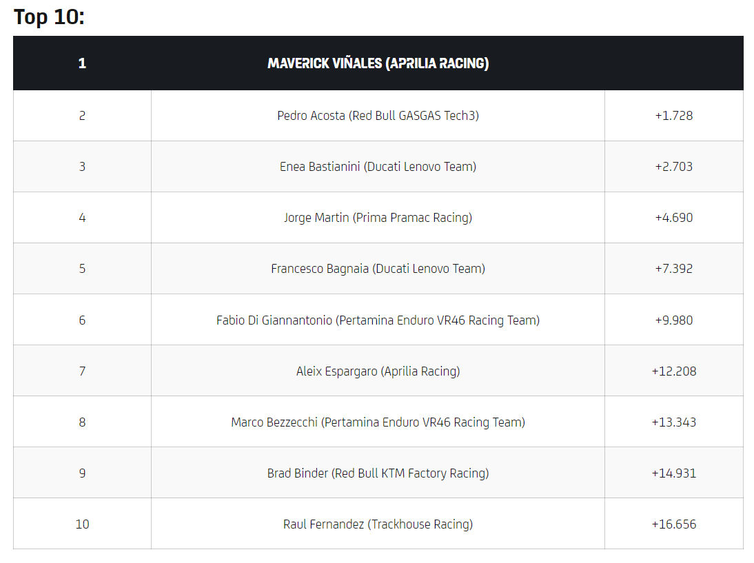 - Marco Bezzecchi (Duc) +0.961