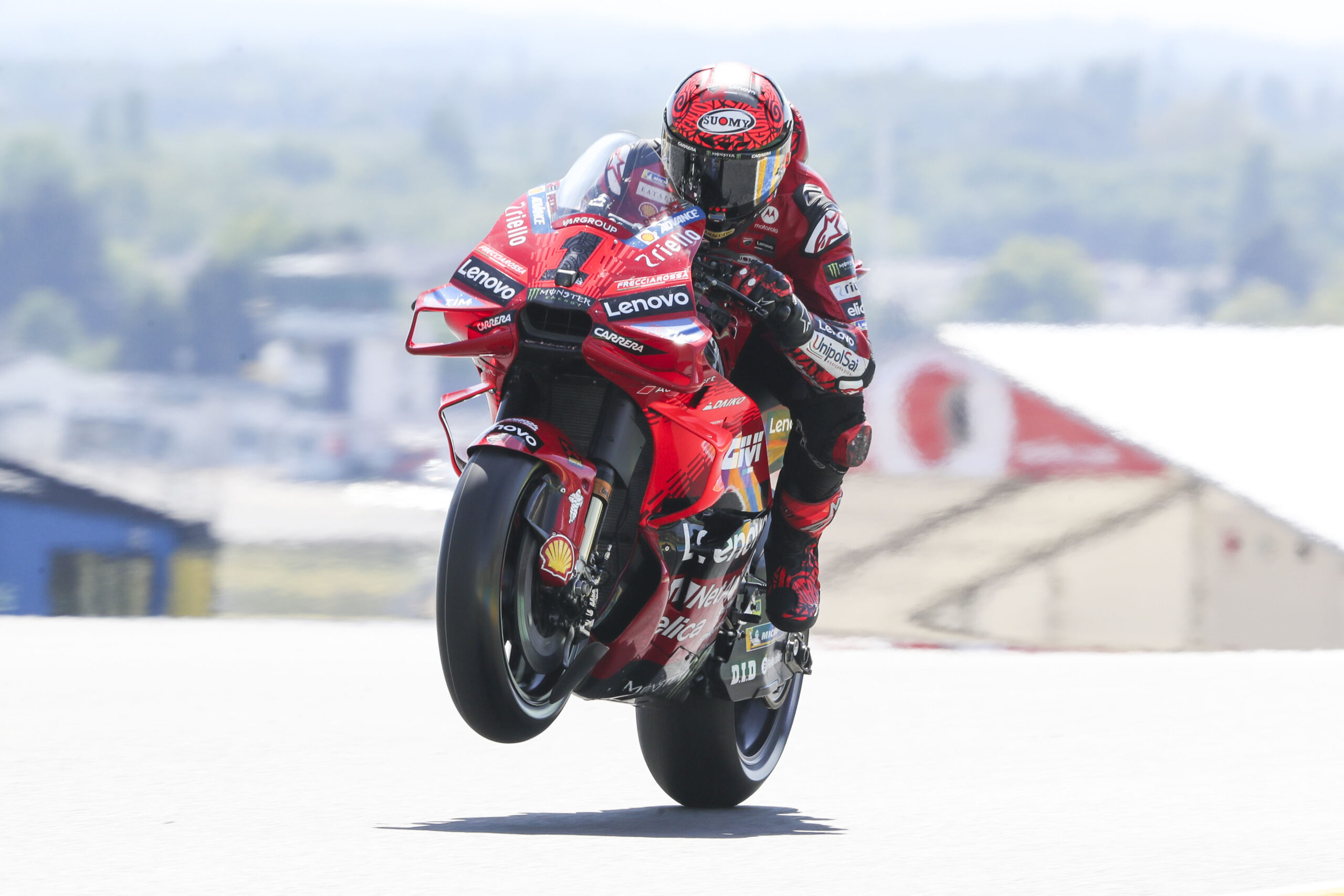 Off the line, Martin made a good start from pole but Bagnaia bettered it, the #1 taking the holeshot from second on the grid. Behind, Maverick Viñales (Aprilia Racing) was threatening but ran in hot at the chicane, leaving teammate Aleix Espargaro to challenge Martin for second on the exit as the #12 Aprilia slotted in just behind Fabio Di Giannantonio (Pertamina Enduro VR46 Racing Team) in fourth. Marc Marquez, meanwhile, was up to eighth almost immediately, slicing up from his P13 grid slot.