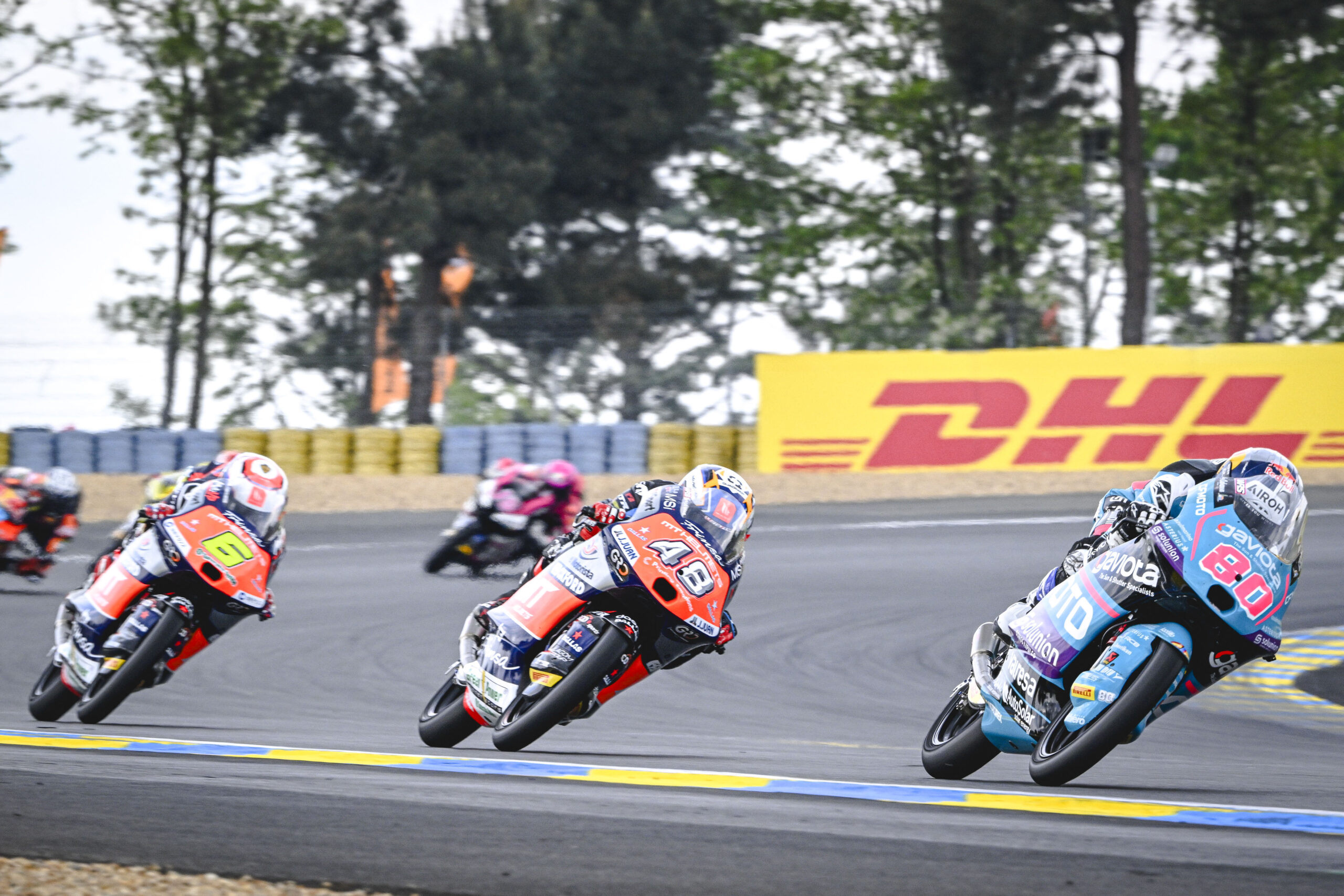 David Alonso (CFMoto Gaviota Aspar Team) put in a masterclass at Le Mans to bounce back from heartbreak in Jerez, attacking early on the final lap and then keeping the door firmly shut to deny Dani Holgado (Red Bull GASGAS Tech3) the top step. Collin Veijer (Liqui Moly Husqvarna Intact GP) completed the podium as three key contenders went toe-to-toe at the front.