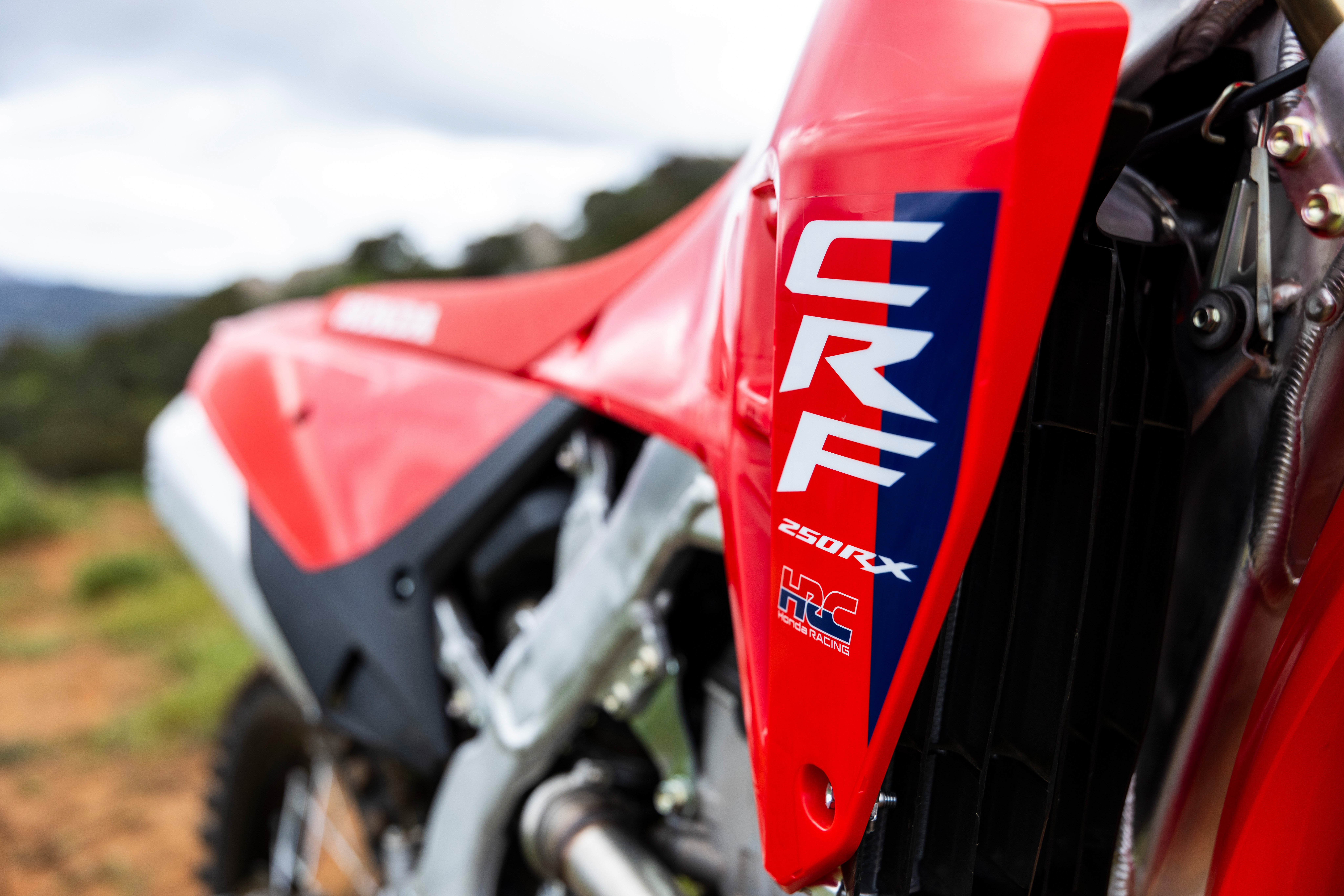 The CRF450RX received the same changes as its close relative, the CRF450R, which means it has a new frame, updated suspension and bodywork. Honda says, “These advancements enhance handling characteristics, with greater stability and comfort—especially in rough terrain.”