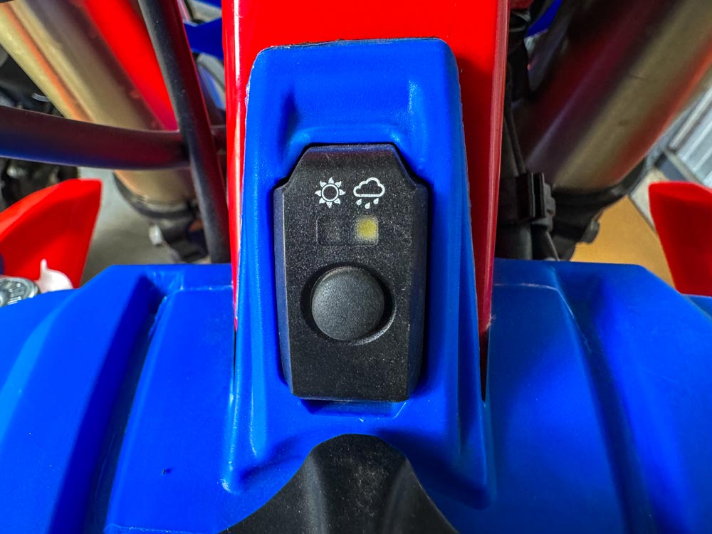 The Beta has a two-way “map” switch. You have Sun mode and Rain mode depicted on the switch. Sun (aka “race”) mode is standard, while Rain (aka “trail”) mode retards timing to improve torque and help control rear wheel spin. The difference is noticeable. The Beta’s power valve can also be adjusted to alter when you want the engine to “come on the pipe.” All three are useful tools for fine-tuning the bike’s power characteristics.