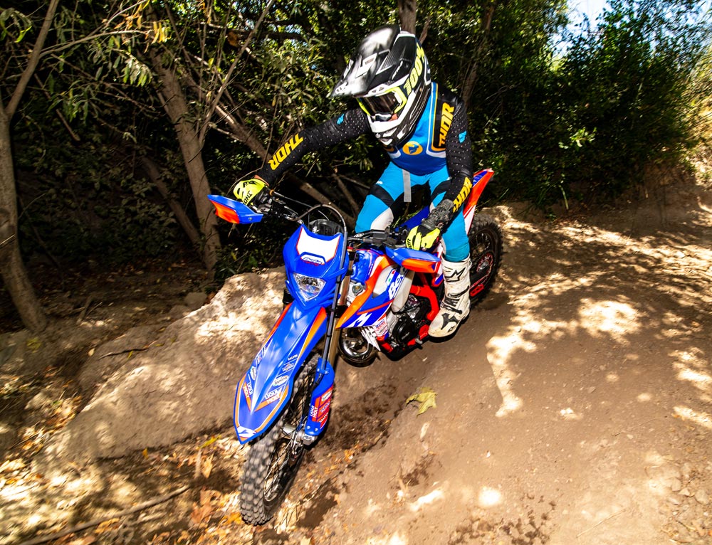 The $8999 Beta 125 RR Racing Edition has only a few natural predators here in the U.S., mainly the KTM 125 XC ($8499) and Sherco 125 SE Factory ($7999), which, from our experiences with these bikes, are formidable foes, and they are priced less. However, Beta’s standard 125 RR retails for $$8599, which is more in line with those bikes, but for just $400 more for the Racing Edition, you get a lot of bang for the buck with the upgraded KYB (versus Sachs) suspension components, a few higher-end gismos, and, perhaps best of all, the beautiful blue and red coloring as opposed to the all-red of the standard model. The standard model, however, comes with electric starting but is not oil-injected like the other two-strokes in Beta’s RR line.