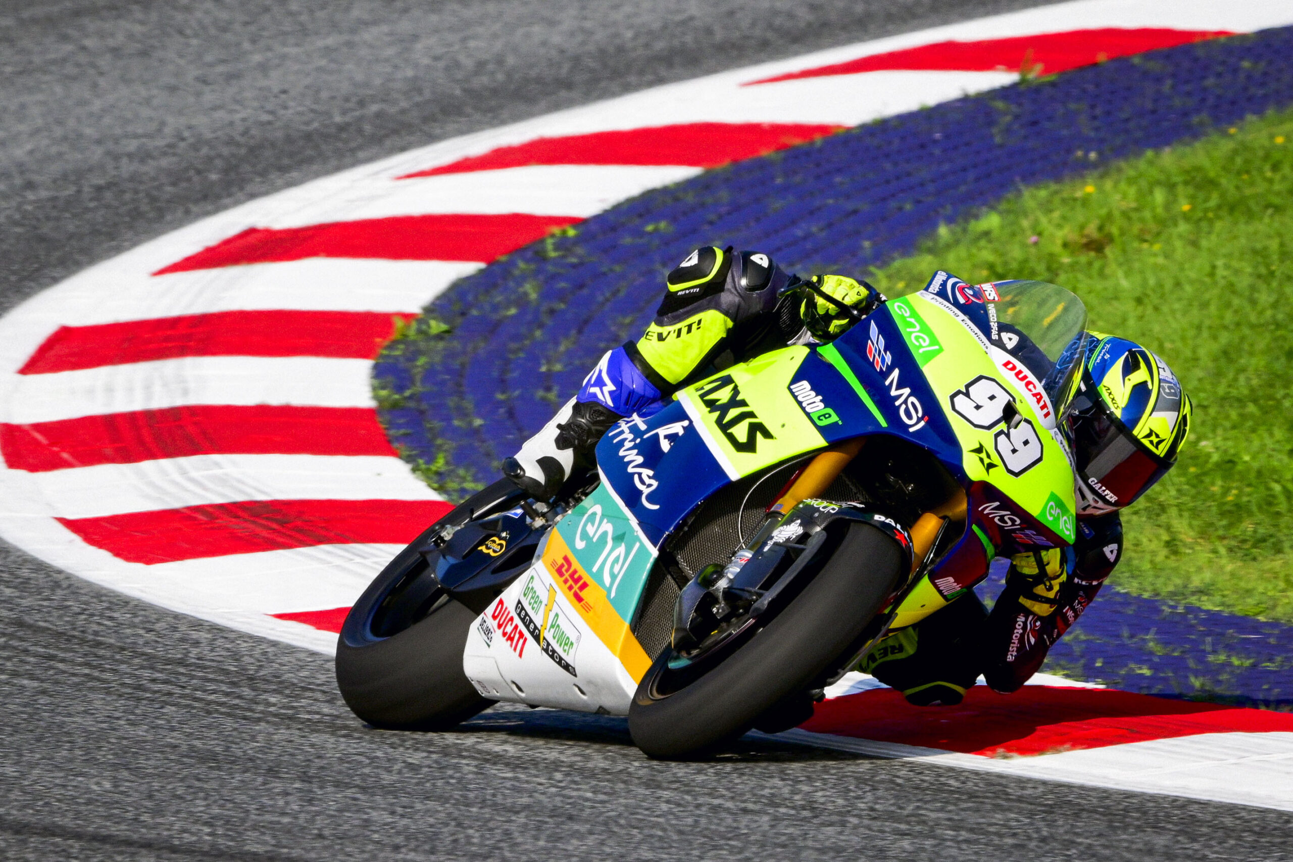 Talk about drama! A last lap, penultimate corner crash for race leader Oscar Gutierrez (Axxis-MSI) handed Hector Garzo (Dynavolt Intact GP MotoE™) a huge 25 points as the title chase leader heads to Misano with a commanding 38-point lead, as Kevin Zannoni (Openbank Aspar Team) and Mattia Casadei (LCR E-Team) complete the Race 2 rostrum at the Red Bull Ring.