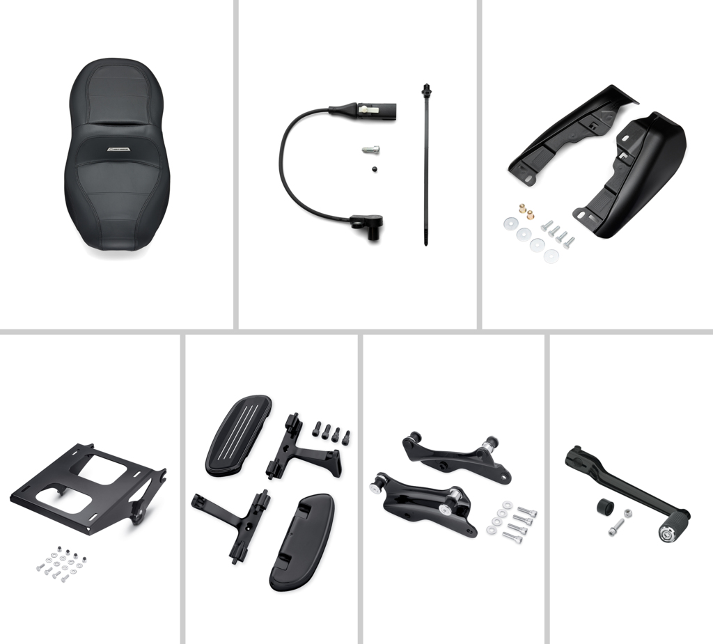 Kickstart a customization journey by ordering everything in one kit. This allows for ideal Harley-Davidson factory fit and quality in components that lay the foundation for a custom build.
