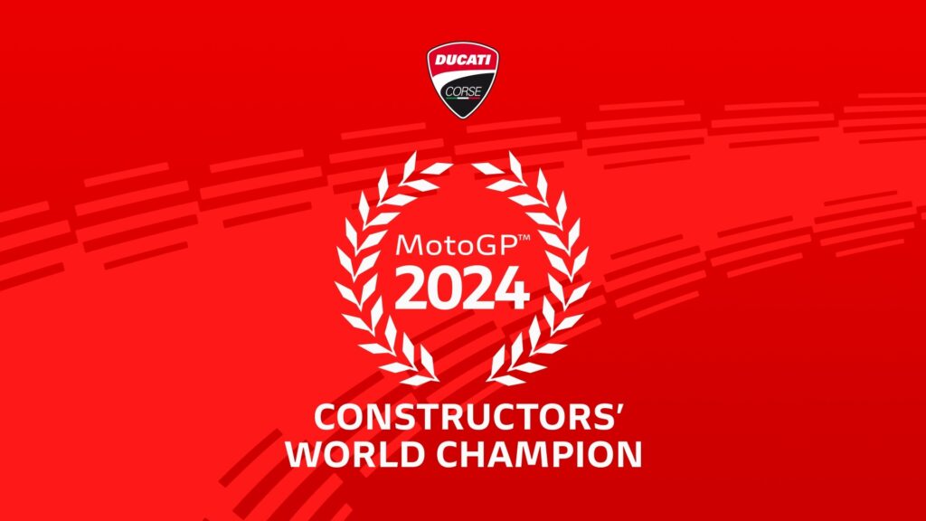 Ducati reaches 100 MotoGP victories and wins its sixth Constructors’ World Title in its history in the Emilia-Romagna Grand Prix at Misano. Ducati is the first European manufacturer to cross this milestone in the premier class of MotoGP.