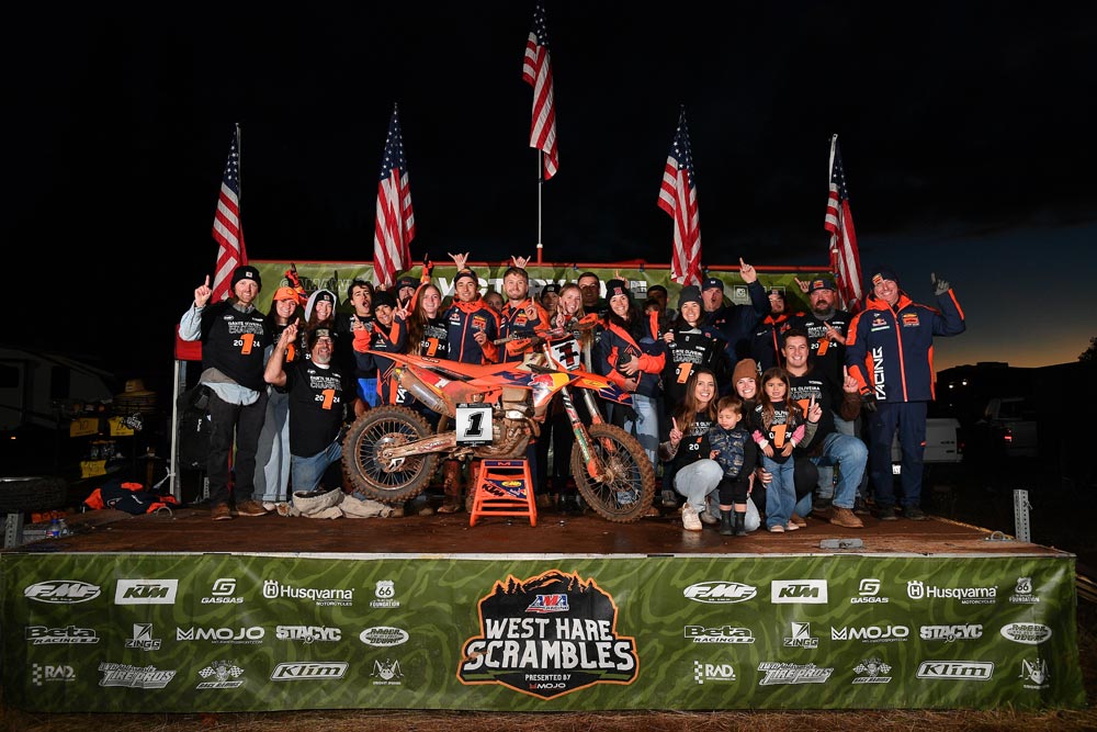 FMF RPM Racing KTM’s Jaden Dahners had a mathematical chance at the Pro 250 title, but a crash in the second turn basically quashed that dream. Even more disappointing for him was new AMA Hare & Hound Pro 250 champ Sam Pretscherer coming from behind to snatch the final spot on the podium at the finish.