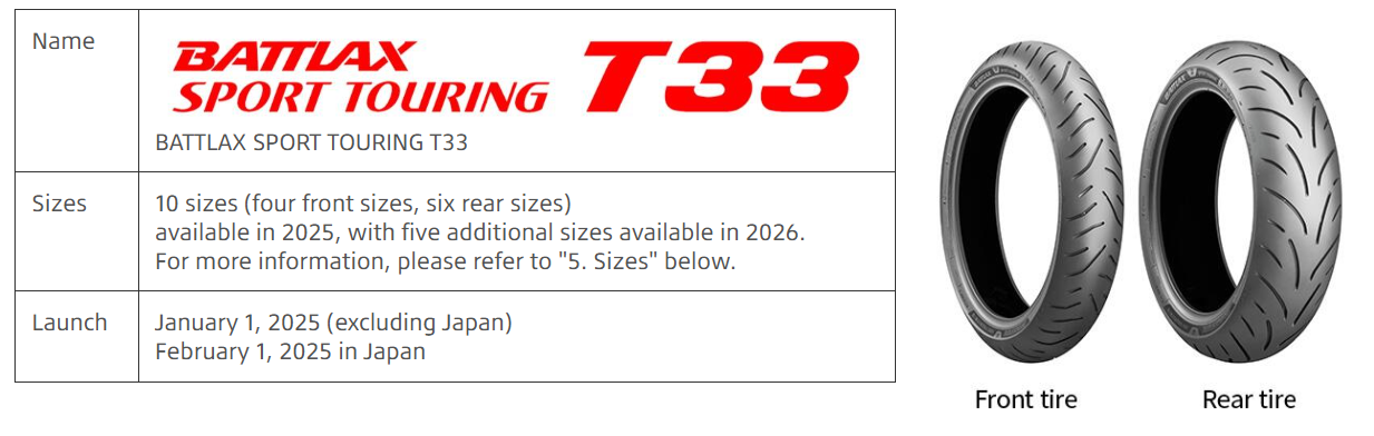 Bridgestone Battlax T33 Tire Sizes