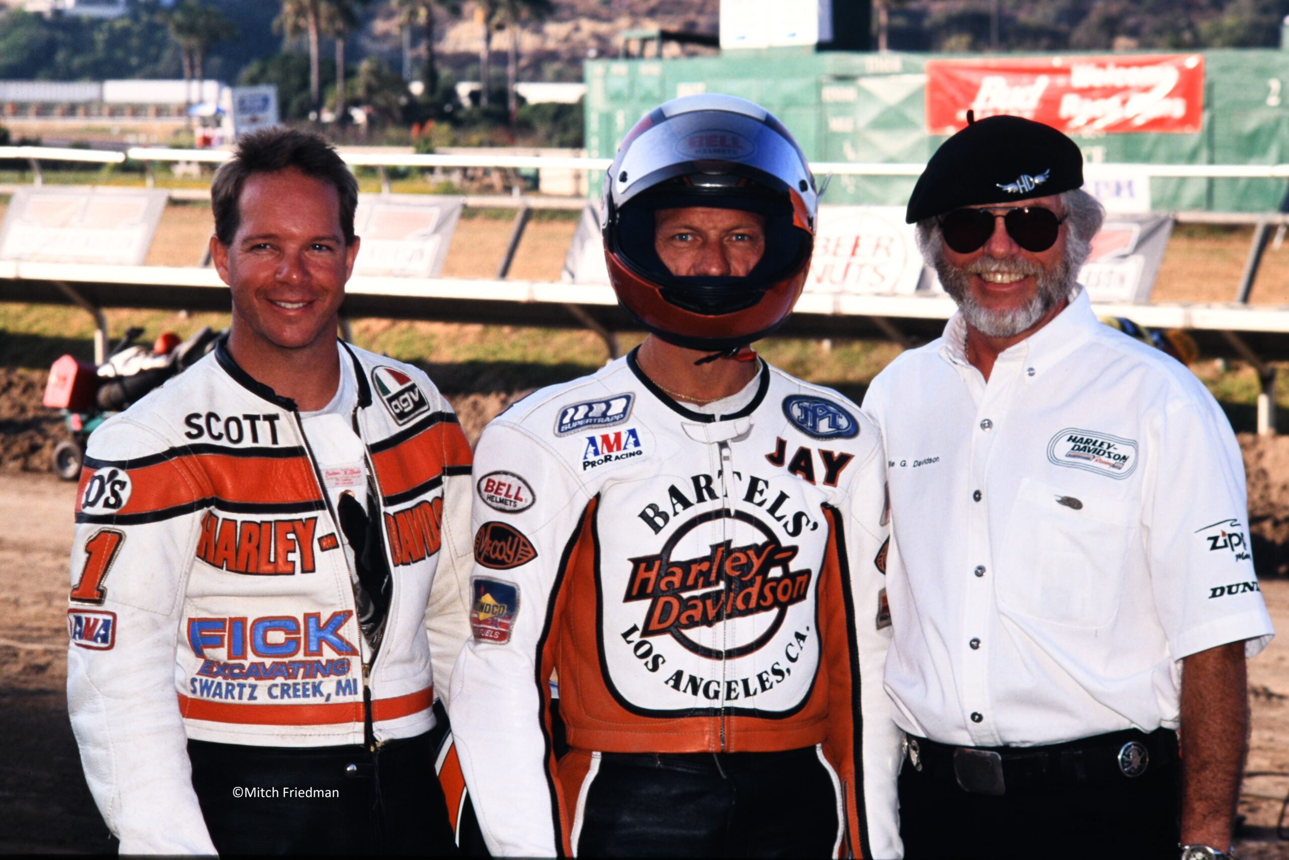In this week’s Throwback we rewind 26 years to 1998 and that year’s AMA Grand National Championship finale at the Del Mar Mile just north of San Diego. That weekend Harley-Davidson’s Willie G. Davidson was on hand to celebrate a likely Harley-Davidson championship. It all worked out as Parker won the race and a record ninth AMA Grand National Championship. Parker was joined by three-time Grand National Champ Jay Springsteen and Willie G. for what was an instant classic capture.