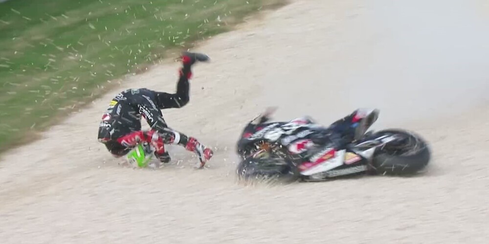Motorcycle racer crashing