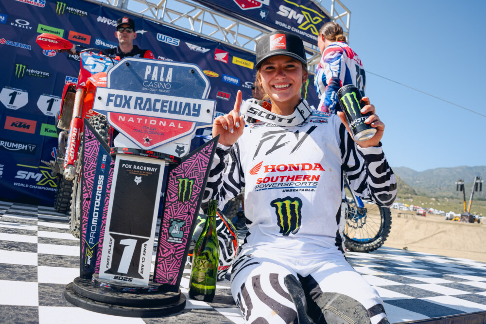 Morgantown, WV (May 28, 2025) – The 2025 Women’s Motocross Championship (WMX), an AMA National Championship, is underway and what is arguably the most talented field of women to ever assemble on a starting gate have thus far exceeded expectations with a memorable opening round from Fox Raceway at Pala in Southern California. A hotly contested pair of motos showcased the parity that is expected over the course of the six-round season, from which SLR Honda’s Mikayla Nielsen emerged victorious with her first career win at her home race. The 18-year-old from Riverside, California, will now lead the WMX field into the second round of the summer this Friday, May 30, in possession of the red plate.