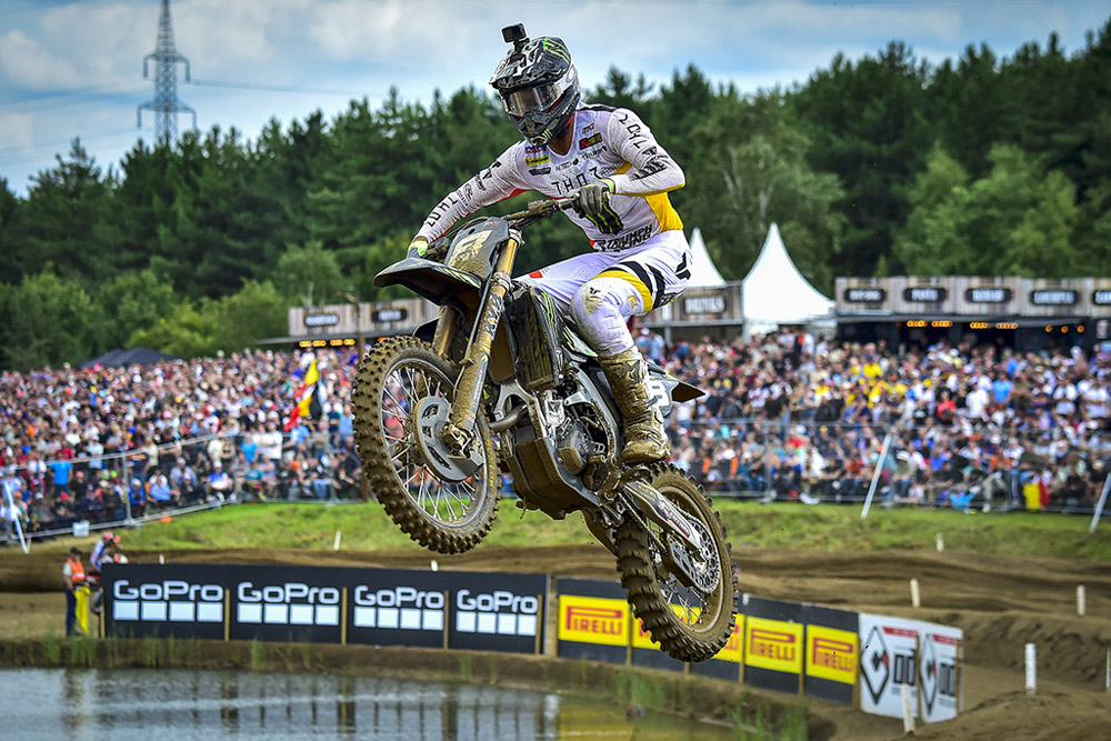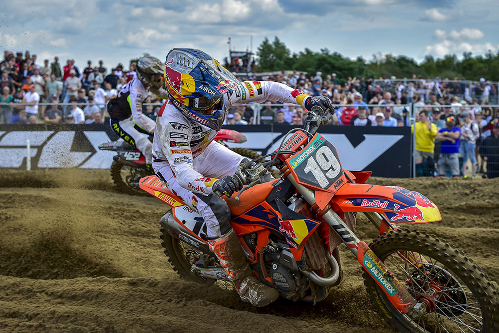 Time is running out for defending MX2 Champion Kay de Wolf. The Dutch rider excels in the Lommel sand, and he proved his point early in race one as he moved to the lead on lap one after passing hometown hero Sacha Coenen. Once out front, de Wolf never relinquished the lead and scored maximum points en route to a near 30-second win.