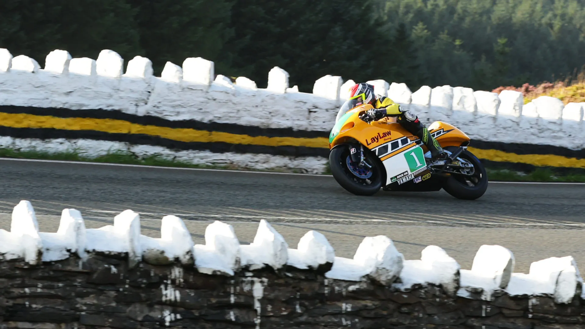 By Ballaugh Bridge, Browne had moved into the lead, his advantage over Dunlop up to 3.5 seconds, while Lougher remained in third, now 2.2 seconds adrift. Sayle had climbed to fourth, but moments later the red flags were shown and the race was stopped following an incident at Glen Helen.