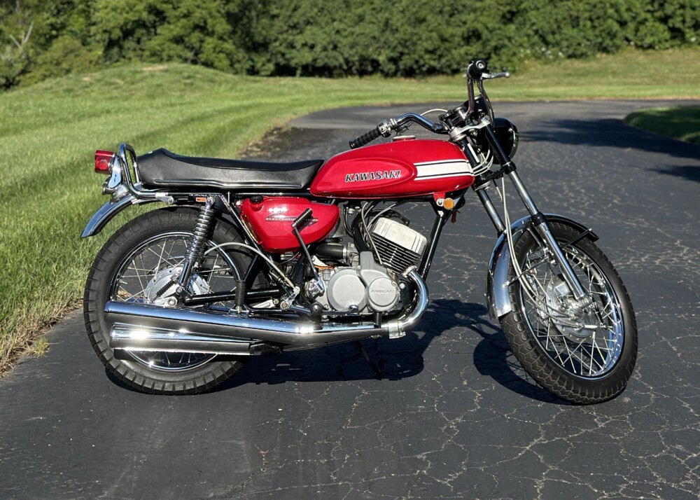 “My initial reaction to winning the bike was disbelief,” Lutz said, “as we entered the raffle to support the AMA Hall of Fame Museum with little hope or expectations of winning. This beautifully restored and iconic three-cylinder two-stroke Kawasaki caught my husband’s attention from his memories of riding one.”