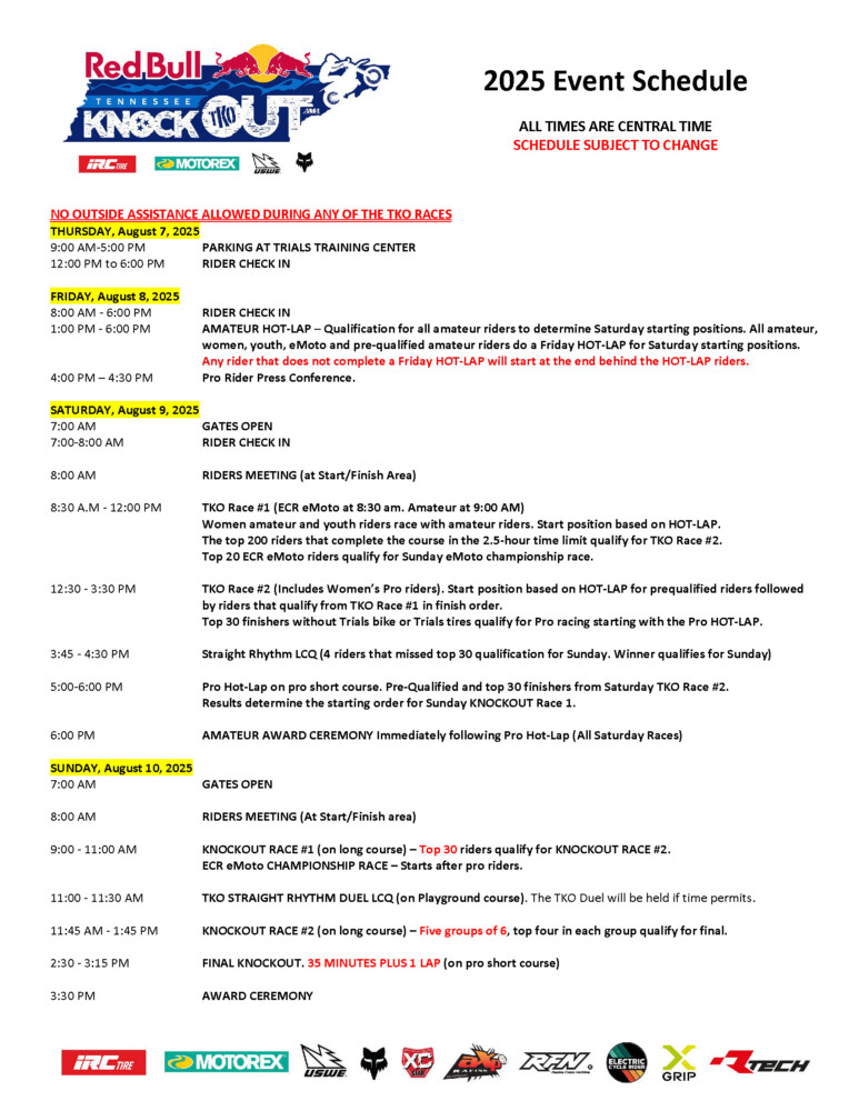 The 2025 Red Bull Tennessee Knockout is celebrating it’s 15th year this weekend (August 8-10) at the Trials Training Center in Sequatchie, Tennessee.