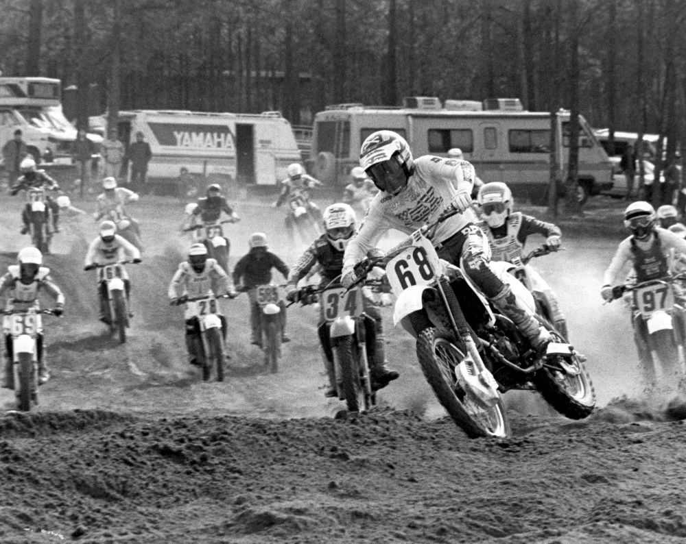 Among those giving chase are Bobby Houser (34) and Kevin Walker (97). Bradshaw went on to win the moto and the overall. The next summer Bradshaw turned pro and made his debut at Millville, where he finished a solid fourth overall. He would go on to win 29 combined AMA Motocross and Supercross events during his career.