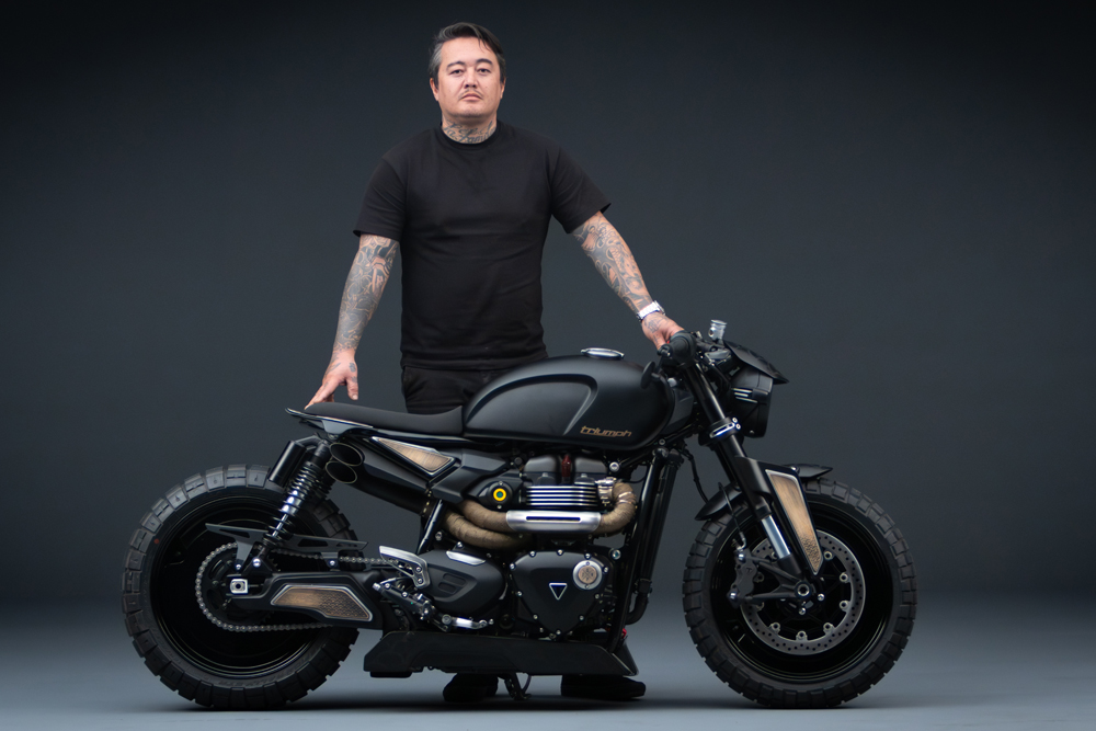 Highly sought by the global media for interviews and to attend events Kimura-san recently appeared as a model in the catalogue of Rimowa, a world-famous suitcase manufacturer, as one of Japan’s leading artists. And with the competitive spirit and good sensibility he developed as a super-sportsman during his student days, he is single-mindedly devoted to building motorcycles. Kengu Kimura chose a build that met Triumph’s reputation for exceptional build quality and craftsmanship, assessing the build quality and ‘fit and finish’.