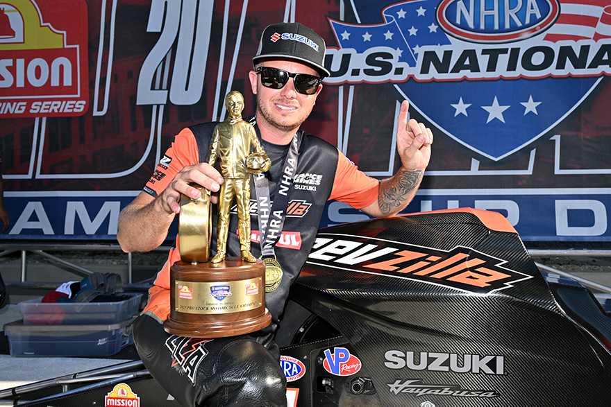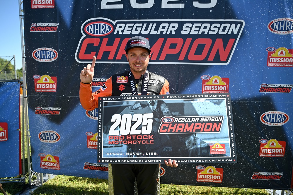 It was mostly a foregone conclusion coming in, but RevZilla/Vance & Hines Suzuki’s Gaige Herrera was crowned the NHRA regular season champion in the Pro Stock Motorcycle class after winning his fifth event of the season at the Cornwell Tools U.S. Nationals, the biggest event in drag racing.