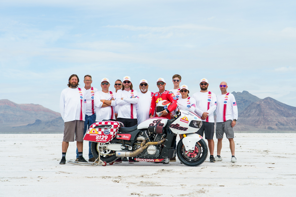Indian Motorcycle, in partnership with S&S Cycle and Mission Foods, set out to Bonneville to see just how fast its King of the Baggers race bike could go. Piloted by Tyler O’Hara, the S&S-built Indian Challenger set a MA 2000cc APS-AG record at 194.384 mph.