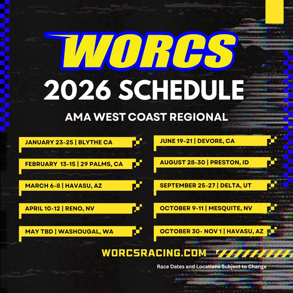 “Becoming the AMA West Coast Regional GP Series is a huge step forward for WORCS Racing and the riders who make this sport so incredible. We’re proud to partner with the AMA as the official West Coast Regional GP Series for 2026,” WORCS Promoter Heather Wallace said. “WORCS Racing has always been about family, community, competition, and showcasing the best off-road talent in the country. With our expanded 10-round, six-state schedule, we’re more excited than ever to grow the sport and provide racers with the highest level of GP racing in the West.”