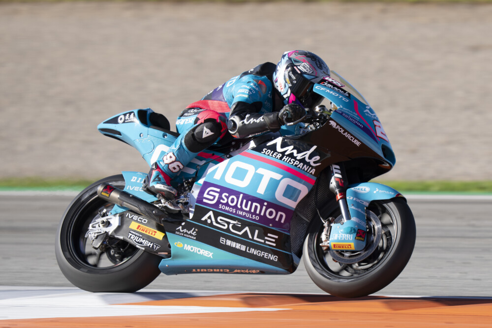 Under sunny skies at the Ricardo Tormo Circuit in Valencia, David Almansa (Leopard Racing) was lightning quick on Friday to secure top spot and a pathway to Q2. He set fastest lap after fastest lap to shave almost a second off the old lap record. The Spaniard sported a margin of over three tenths of a second and goes into Saturday as the rider to beat, as teammate Adrian Fernandez and Valentin Perrone (Red Bull KTM Tech3) completed the top three.