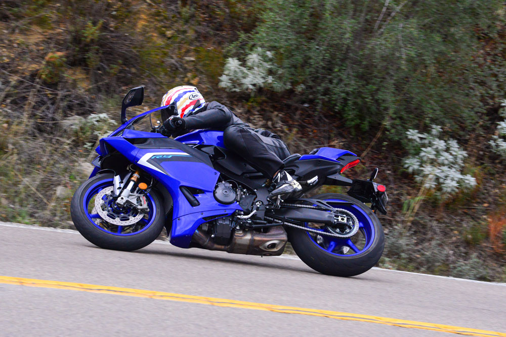 The R9 may have gained some girth over the R6, but that size advantage translates to a bike that’s uber-stable once it’s on the side of its Bridgestone S22 tire. In much the same style as the R1 superbike, the R9 will hold its line for as long as the corner continues. When it comes to fast direction changes, the R9 can’t hold a candle to its dearly departed brother, but having size and muscle has its advantages, too.