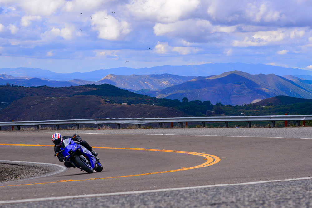 At first glance, the R9 appears to be an overweight supersport or a slightly small and much slower superbike. Its ergos are stretched out, and there’s more room than on the R6, but those early internet commenters who said this was no sportbike because it used the MT-09 as its base clearly didn’t know what they were talking about. I know this because my butt and my knees were shot after an hour on the R9 and through SoCal’s mountain roads.