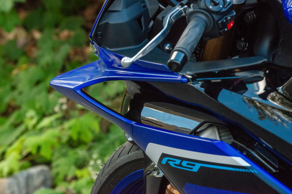 The R9 is very much a sportbike, but it feels confused. The MT-09-derived three-cylinder engine has oodles more torque than the R6 could ever dream of, making it easy to leave in third or fourth gear and zip from corner to corner. But it is significantly longer and heavier than the R6’s svelte race-bred frame.