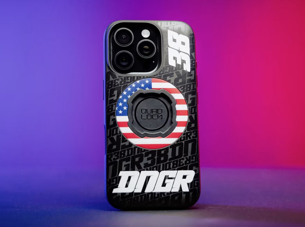 The Quad Lock MAG Case – Deegan Edition is a limited-edition, rugged phone case co-designed with SX/motocross star Haiden Deegan, featuring his race number 38, DNGR branding, a USA MAG ring and the R38UN pattern.