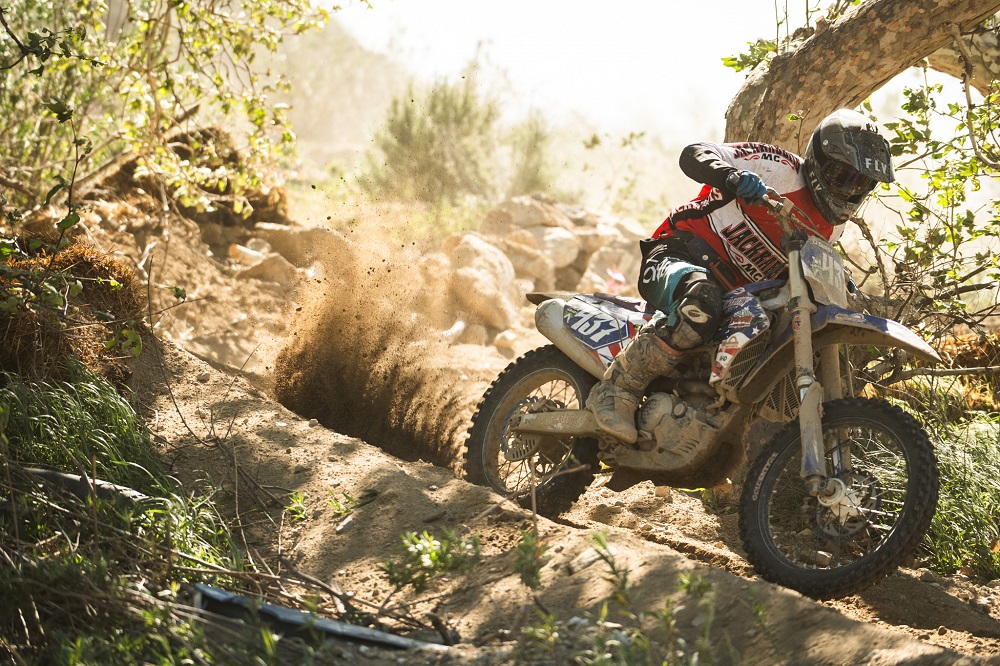 Just a few turns into the dusty ridgeline section, Hunter made the pass back for the lead and used the dust to his advantage in building a small gap early on O’Dor, eventual winner Nicholson, and the rest of the teams in tow. By the end of the lap, the top three were spread out in 10-second intervals, with Nick Stover on a GasGas 300 wheel-to-wheel behind Nicholson in fourth.