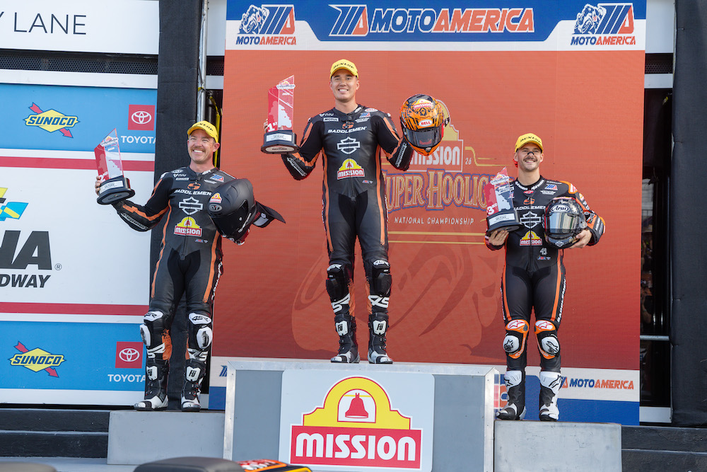 Rounding out the rest of the field were Big Diehl x Harley-Davidson Factory Racing James Rispoli in fifth, SDI Racing’s Tyler O’Hara in sixth, Saddlemen Racing Development teammates Jake Lewis and Cory West in seventh and eighth, and M3/Tobacco Road Harley-Davidson’s Max Flinders in ninth.