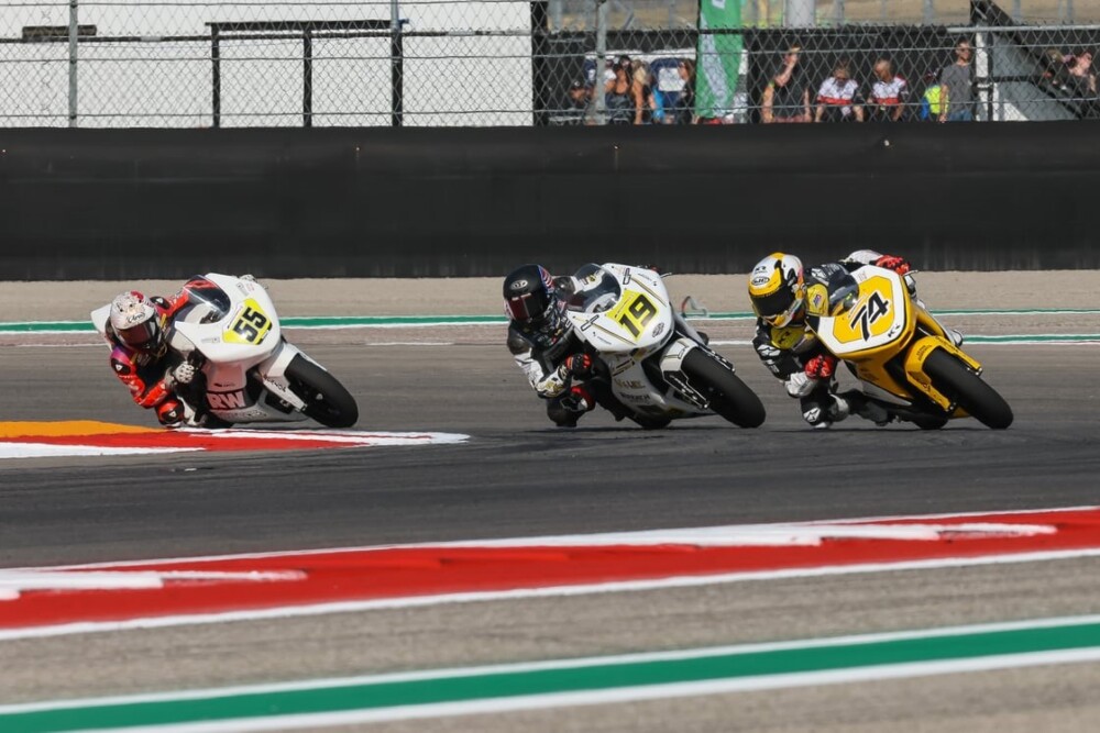 Polesitter Nathan Gouker won MotoAmerica Talent Cup race one at Circuit of The Americas in Austin, Texas, followed closely by three of his fiercest competitors.
