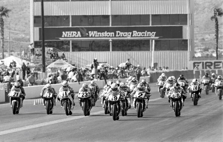 In this week’s Throwback Thursday, we dial back the clock to 1995’s AMA Superbike Series finale at Firebird International Raceway in Chandler, Arizona. The photo shows the start of the race with Fast by Ferracci Ducati rider Freddie Spencer (19) getting the early jump on the rest of the field. Riders chasing Freddie include Pascal Picotte (21), Dale Quarterley (32), Thomas Stevens (11), Mike Hale (23), Jamie James (2), Mike Smith (68), Chris Carr (74) and many others. Even though Freddie got the great start it was Honda’s Mike Hale who motored his way to the front to take the win.