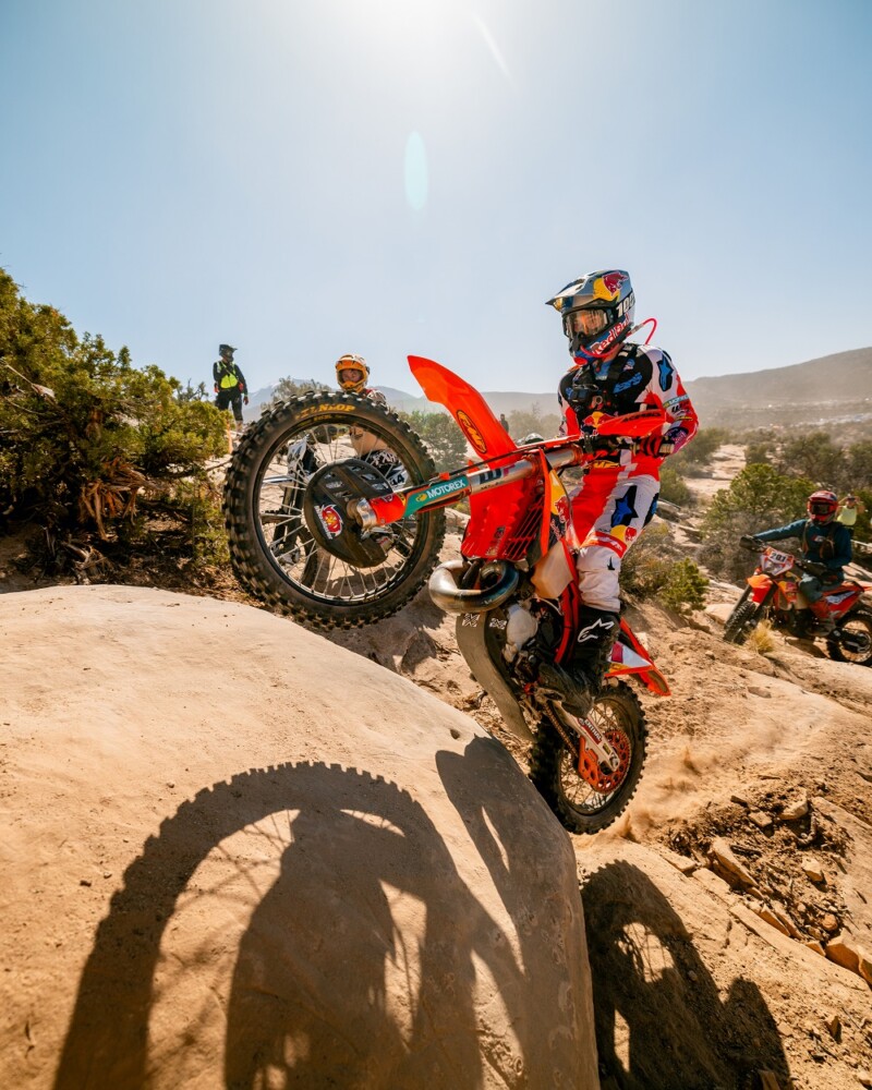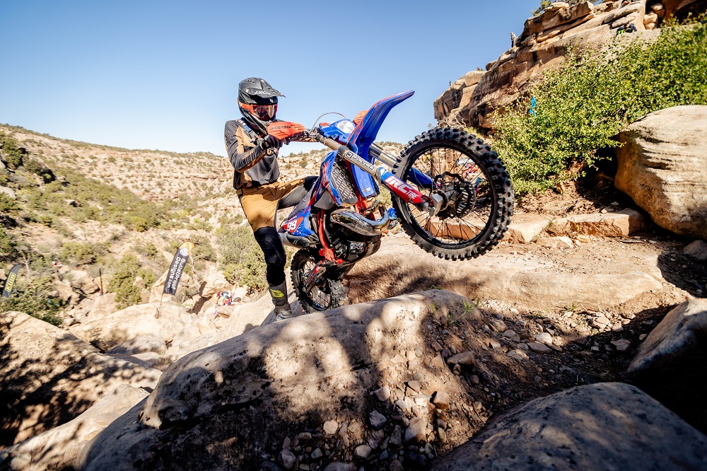 In the afternoon, the Shootout took the top 20 overall finishers from the Prologue, and sent them into a spectator-friendly short course, where they battled for final start position and a cash purse. After a hot lap and some intense battles, Trystan Hart came out on top, with Webb and Hintze rounding out the podium. After the Shootout, the Moab Hard Enduro hosted a Stacyc race, where the next generation of 3-8-year-olds raced around a fun off-road course for the enthusiastic crowd.