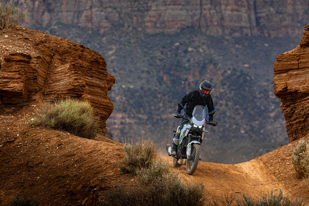 Back in St. George, a decent portion of the ride was on dirt, mostly on well-maintained, well-used roads that were dry, slippery and dusty. Again, the KLE performed well. Power delivery is extremely smooth, making it easy to control the rear wheel and keeping it from breaking loose when you don’t want it to. Roll-on power is so smooth that you don’t miss the lack of traction control. You just don’t need it. I wouldn’t call the KLE exceptionally torquey, but it pulls nicely at low rpm and has a super-linear powerband. It revs fairly quickly once you start getting into the midrange and the rpm starts building. When the R’s do pick up, the KLE emits a pleasant note from its parallel-twin engine and single muffler, with a hint of “growl.”