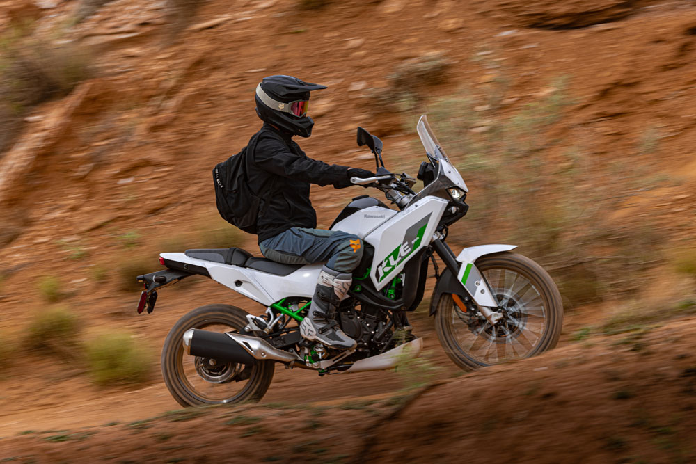 Kawasaki already offers several accessories for the KLE, including an engine guard, a radiator screen, handguards, side bags, a top case, a rear carrier, fog lamps, a USB type-C plug, a one-inch lower seat, a lower passenger seat, heated grips and, as mentioned, a centerstand. The KLE I rode back from St. George on was an SE fitted with an engine guard, side bags, USB port and the rear carrier. All were nice to have.