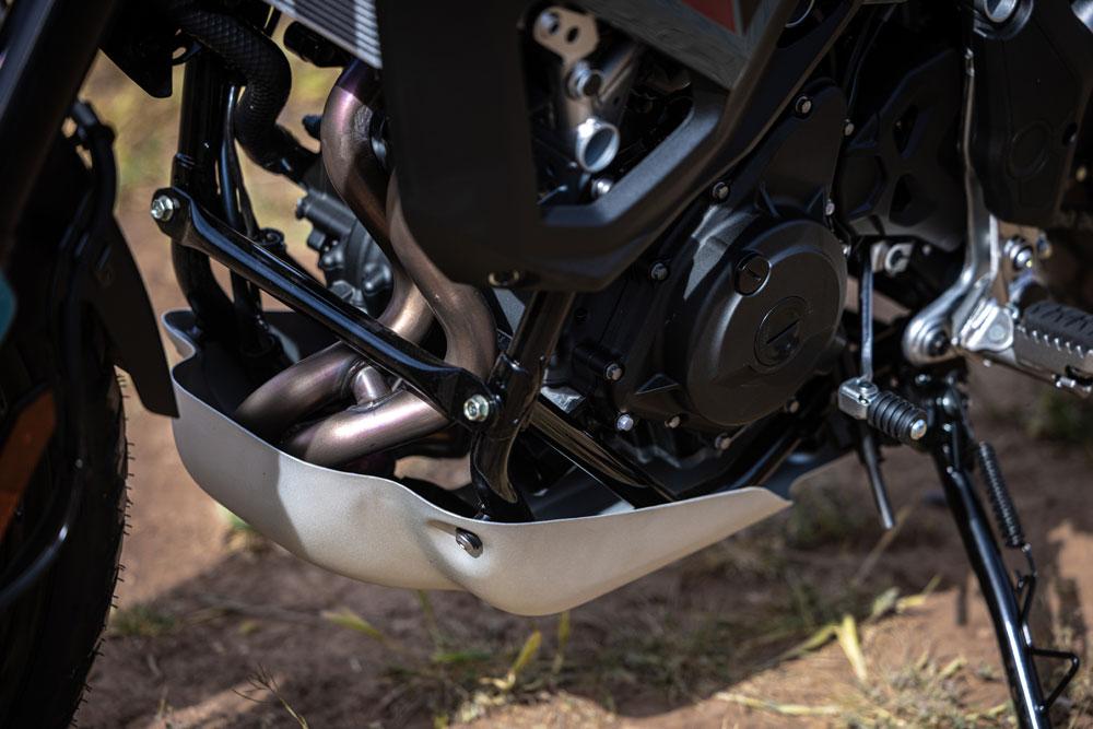 Whoops, ruts and rocks pose another concern: ground clearance, which the KLE doesn’t have a lot of at just 7.3 inches. It has less ground clearance than it does wheel travel, so you must keep that in mind, especially in rocky terrain. It’s no wonder Kawasaki fitted the KLE with a skid plate. There is no centerstand under there, but Kawasaki does make one for it.