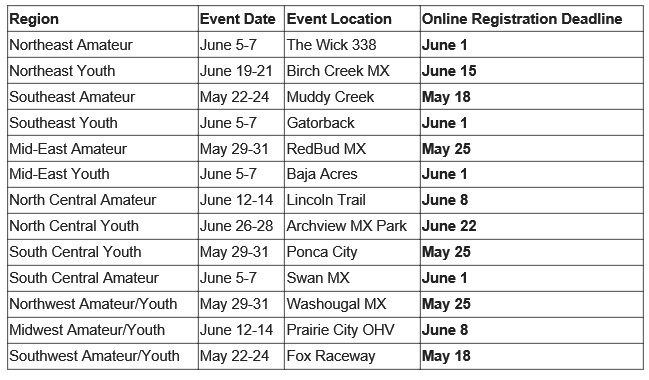 Morgantown, WV (April 1, 2026) – MX Sports, producer of the Monster Energy AMA Amateur National Motocross Championship presented by Amsoil, is excited to announce that online registration for the upcoming 2026 Regional Championships is now open. Unlike Area Qualifiers, racers must register online to confirm their guaranteed spot or alternate status with MX Sports.