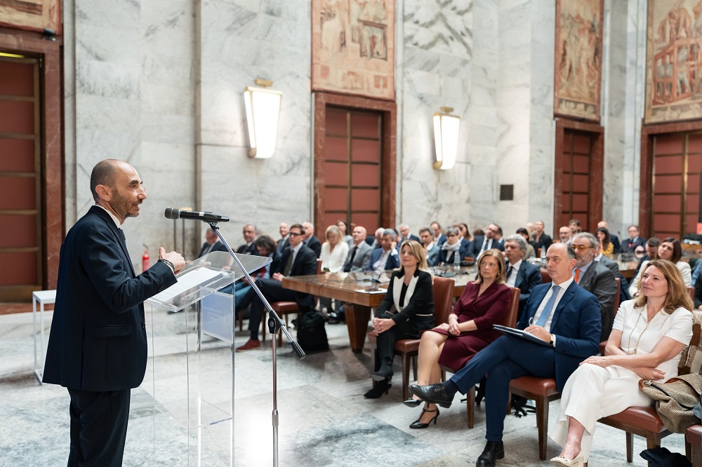 The official presentation took place on Thursday, April 9, in the Sala degli Arazzi of Palazzo Piacentini, headquarters of the Ministry of Enterprises and Made in Italy, in the presence of Undersecretary of State for Philately, Fausta Bergamotto.