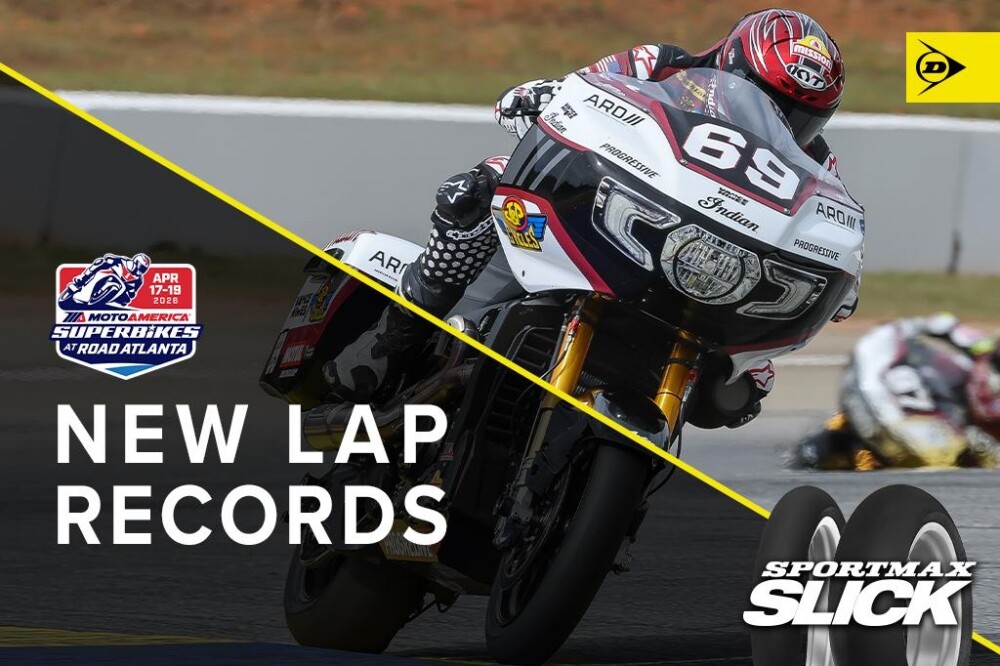 Rancho Cucamonga, CA (April 21, 2026) – Dunlop Motorcycle Tires is proud to announce that multiple new lap records were established at Road Atlanta during the latest round of MotoAmerica competition. Powered by Dunlop’s Sportmax Slick tires, riders delivered record-breaking performances across several classes in a weekend defined by speed, consistency, and dominance.