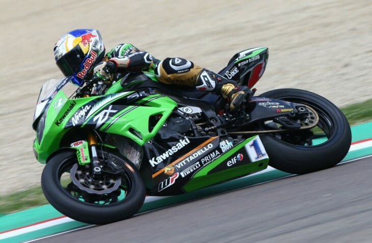 Welshman blasts to a new lap record while Guintoli crashes hard.