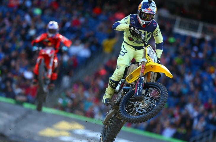 Eli Tomac and Ryan Dungey finish on the podium at Gillette Stadium