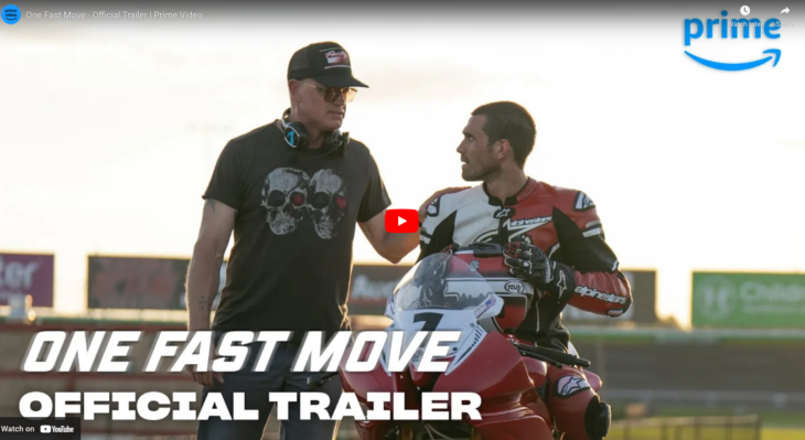 Road racing movie stars K.J. Apa, Eric Dane, Edward James Olmos, and Maia Reficco.